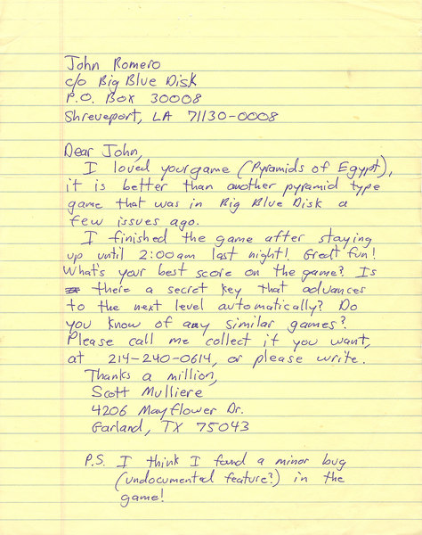 I had also worked for some of those guys, and I knew that [some magazines] were ran by a guy who was very paranoid of losing his talent. So when I saw Dangerous Dave and wanted to contact John Romero, I knew I couldn’t just write him a letter saying, “Hi, John. I started a company called Apogee and would love the chance to work together. Would you call me?” I knew that letter would get filtered by Softdisk’s management.