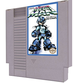 A Mega Man Ultra cartridge, which can play on a NES console. The MMU ROM was burned onto a chip and couched within a cartridge, the same way Nintendo and other publishers packaged their classic games.