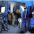 Dave Plaskett can be seen standing in front of the camera with headphones on. Gill Neuman is standing to the right of the crowd at the door in a white shirt. Around the periphery of the setup are sound blankets hung on c-stands to soak up the audio brightness and echo of the blue screen cove.